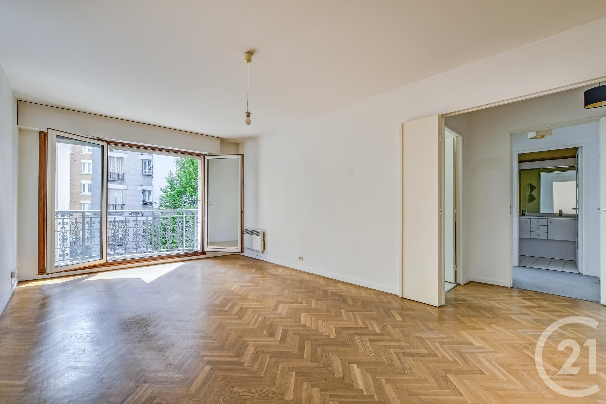 L'appartement, au calme absolu, lumineux et exposé plein EST, offre une vue sur une cour arborée.
